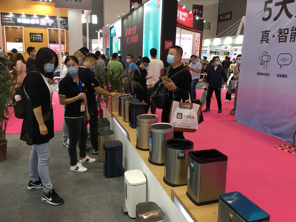 本屆展位最大的驚喜就是近20款超邦智能垃圾桶的驚艷亮相,作為香山股份旗下子品牌超邦,一直推行“美好生活研究所”的優(yōu)活概念,為都市人忙碌的生活做智能減法。香山自主研發(fā)的智能垃圾桶的出現(xiàn),照顧到居家垃圾的清理習慣,可以說是香山智能家居的又一個里程碑。本次展出的智能垃圾桶,多選用410不銹鋼工藝,創(chuàng)新封油技術,能有效抵抗殘留指紋、油污等。另選用進口智能芯片,有效延長續(xù)航時間。產品機身感應覆蓋360°無死角,任意觸碰均可智能開蓋,5S后自動關閉。靜音開合,減少生活噪音。富有流線型的外觀,智能的操作,讓智能垃圾桶成為本次展會的新寵,進來體驗、詢價的客戶不斷,掀起一輪新高潮。