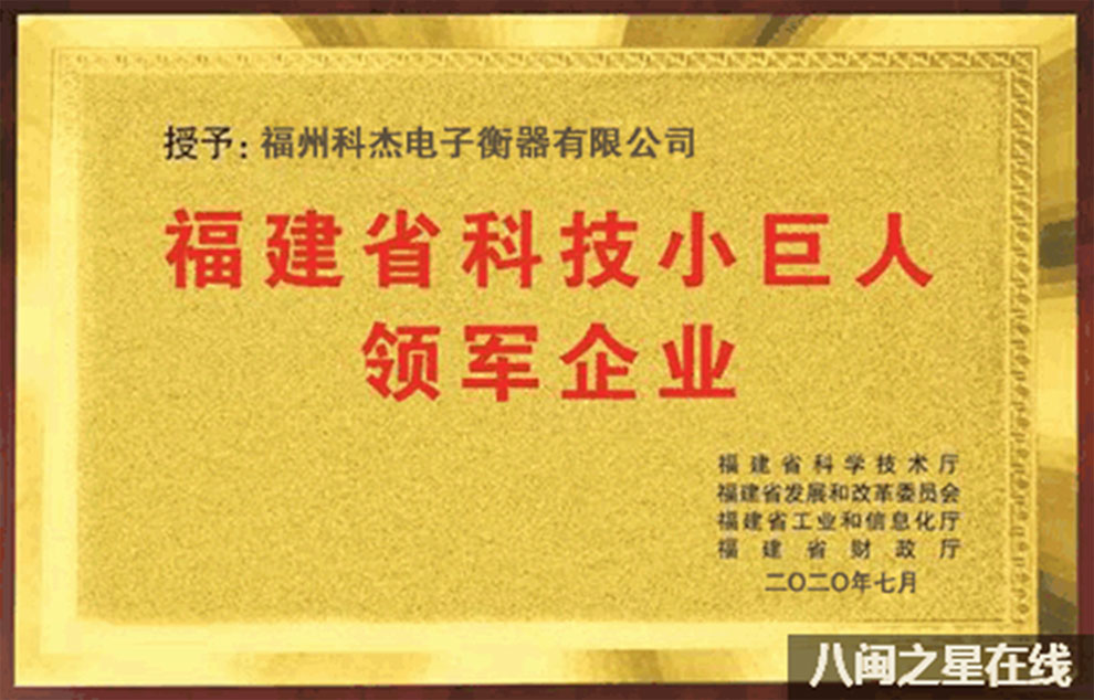 福州科杰電子衡器有限公司榮獲 2020年福建省科技小巨人領(lǐng)軍企業(yè)等榮譽(yù)稱號(hào)