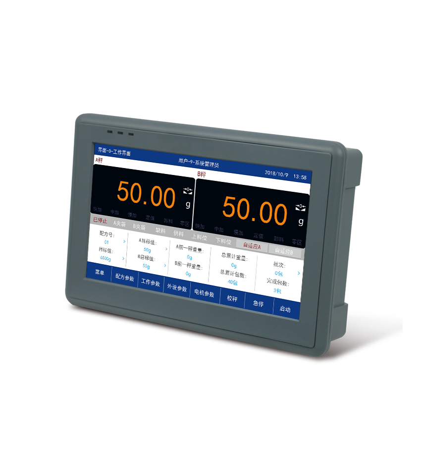 GM9907-L2是針對單秤增量法自動定量包裝秤而專門開發(fā)的一款智能包裝稱重儀表,具有靈活的邏輯輔助編程功能以及更為友好的人機界面,極大的提升了客戶的應用便利性,可廣泛應用于糧食、飼料、種子、化工等需要定量包裝設備的行業(yè)。● 7寸全彩觸摸屏,中/英文顯示,界面美觀大方,操作簡便● 標配網(wǎng)口及雙路串口,方便物聯(lián)與數(shù)據(jù)交換● 自帶USB接口,可用于導入、導出各類參數(shù)及統(tǒng)計數(shù)據(jù);亦可用于產(chǎn)品升級及開機畫